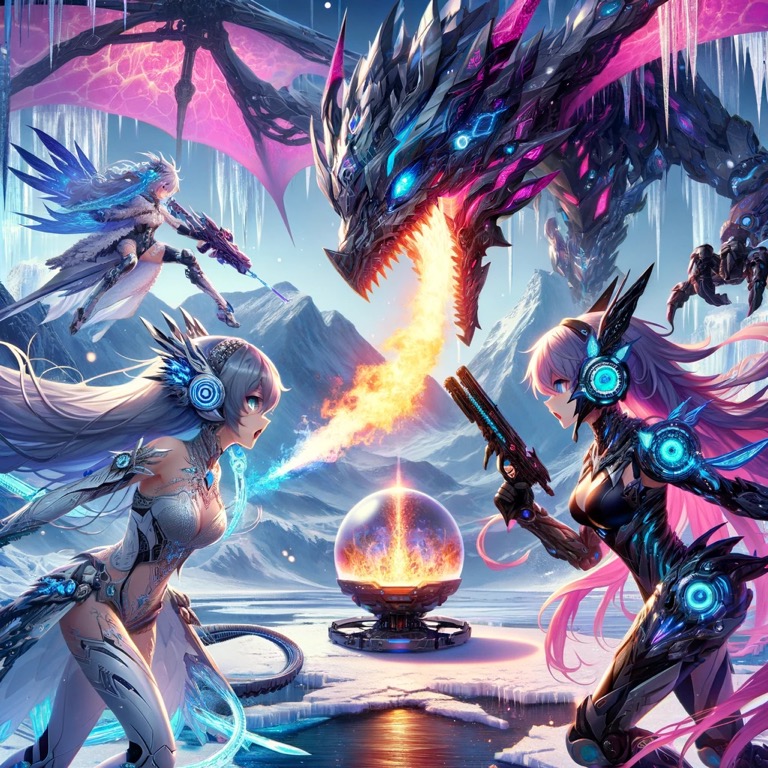 彼女は目を閉じ、深い集中の中に入る。その瞬間、デバイスから発せられる光が一層強くなり、彼女の周囲には保護のバリアが形成された。ドラゴニアンの一斉攻撃が彼女に向けて放たれるが、バリアはそれを一つひとつ吸収し、それを彼女のエネルギーとして蓄積していく。