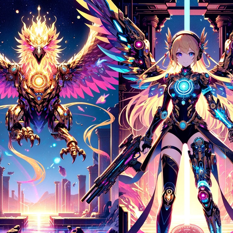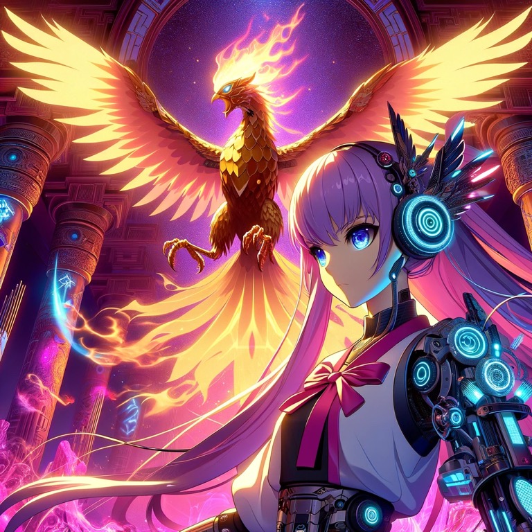 ソフィアとピポ、そしてインターステラー・ハーモニクスのアウリア、セリア、ソラは、遺跡の地下1階に向かい、次元の鍵を守るアズラエルとの決戦に臨みました。アズラエルは、古代の存在の威厳と力を持つ不死鳥でした。戦いの舞台は、遺跡の地下1階、神秘的な光に満ちた大広間でした。