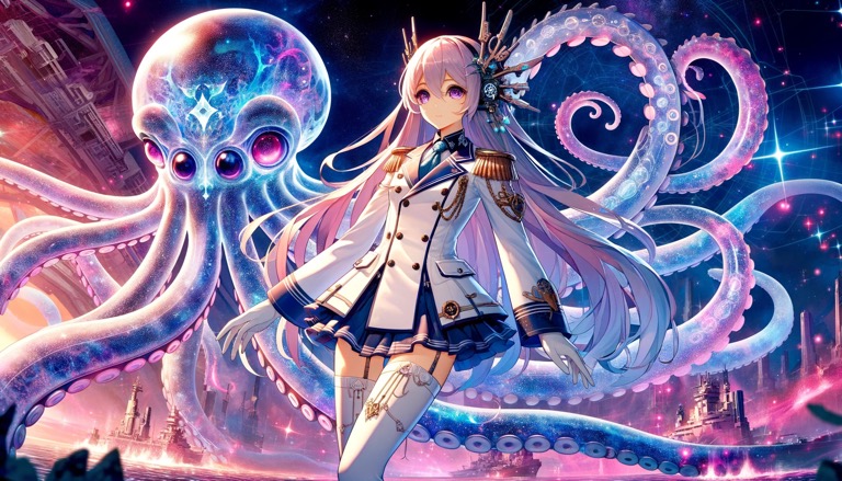 その時、彼らの前に現れたのは、伝説の海の怪物、クラーケンに擬態したアクアティック・スターベイングスでした。その壮大な姿は、一瞬でクルーを圧倒しましたが、クラーケンは穏やかな態度で彼らを迎え入れ、深海の宮殿へと導きました。エレノアとジョンは、クラーケンから水の重要性と宇宙のエネルギーフローについての教えを受け、新たな知識と智慧を得ることになります。